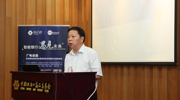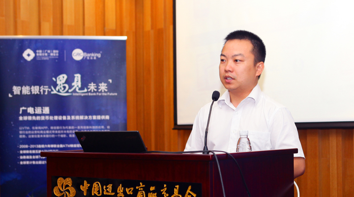 图4:特邀企业代表广电运通副总经理罗攀峰分享移动金融背景下的银行渠道变革案例